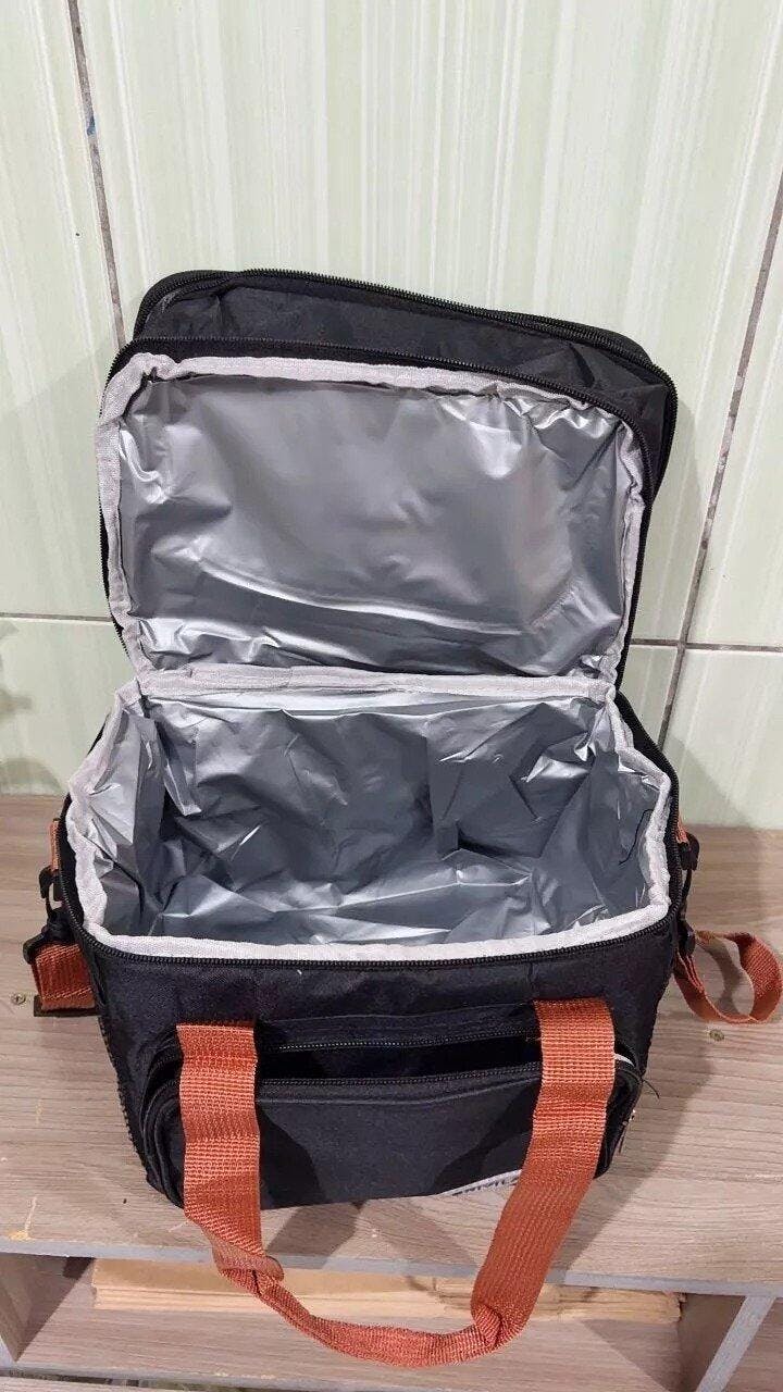 Fabricada em tecido Oxford catiônico premium, com acabamento impermeável e interior em PEVA com isolamento térmico, ela mantém alimentos e bebidas frescos ou aquecidos por muito mais tempo.