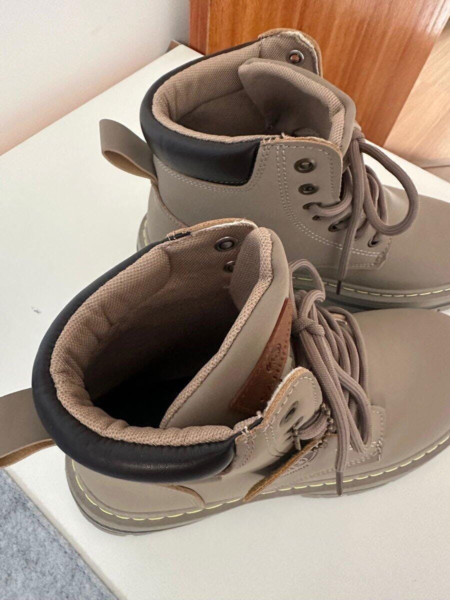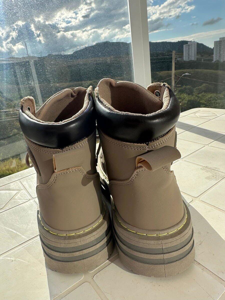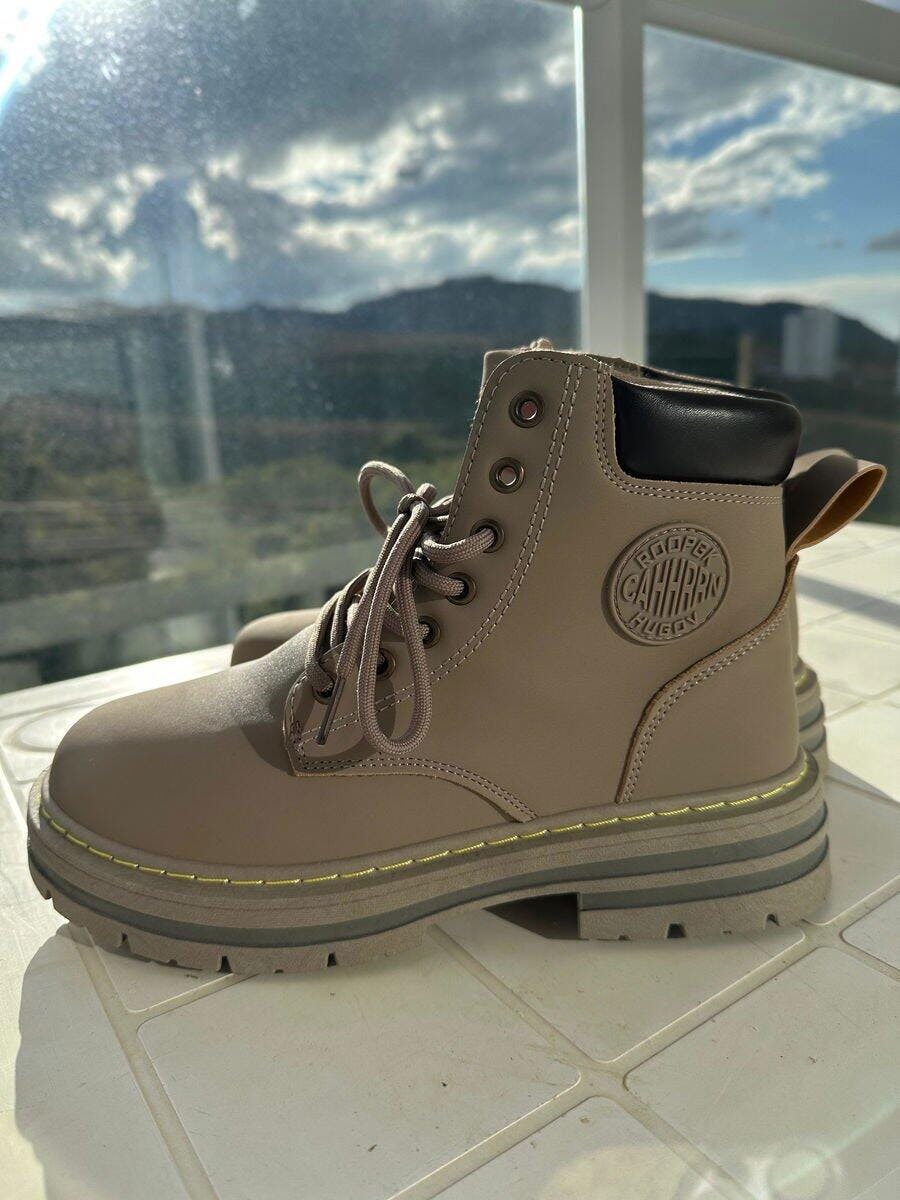 Com design robusto e funcional, combina cabedal em couro, costuras reforçadas e solado tratorado de borracha para máxima tração em diferentes superfícies. Sua estrutura resistente mantém os pés secos e protegidos mesmo sob chuva intensa, poças d’água ou em terrenos irregulares.