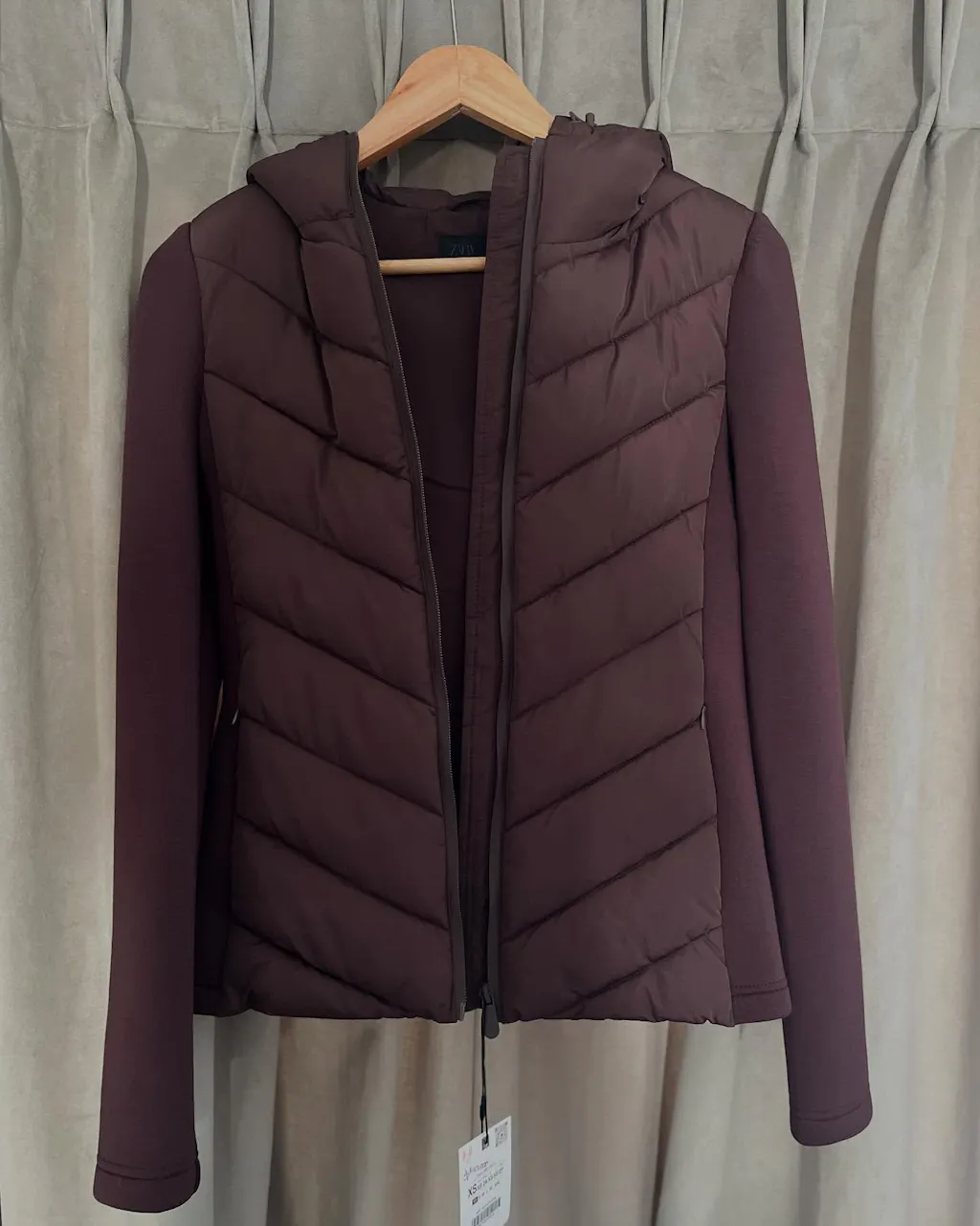 O acabamento em tecido misto acolchoado traz um toque refinado, enquanto os bolsos frontais com forro e zíper invisível garantem praticidade sem abrir mão da estética. O fechamento frontal com zíper completa o visual clean e urbano da peça.