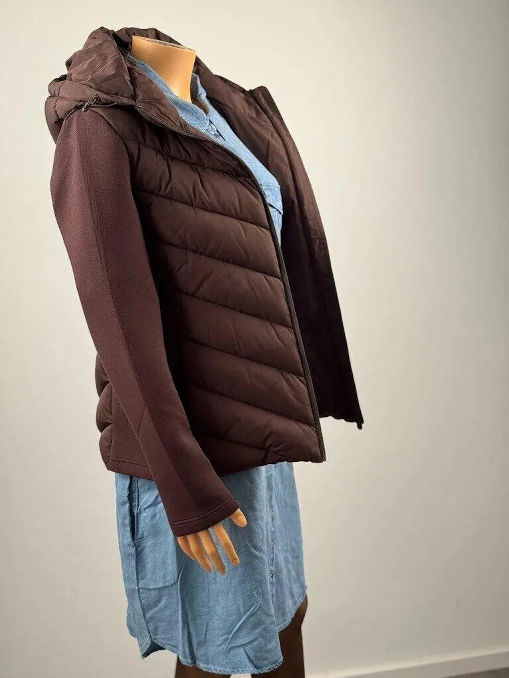 A Jaqueta Acolchoada Marrom Fahart Lemartine combina conforto térmico, funcionalidade e sofisticação para os dias mais frios. Seu design conta com gola alta, capuz ajustável com cordões elásticos e mangas compridas, oferecendo proteção reforçada contra o vento e o frio.
