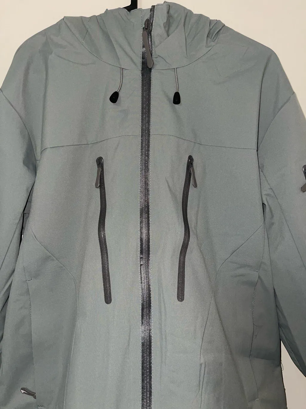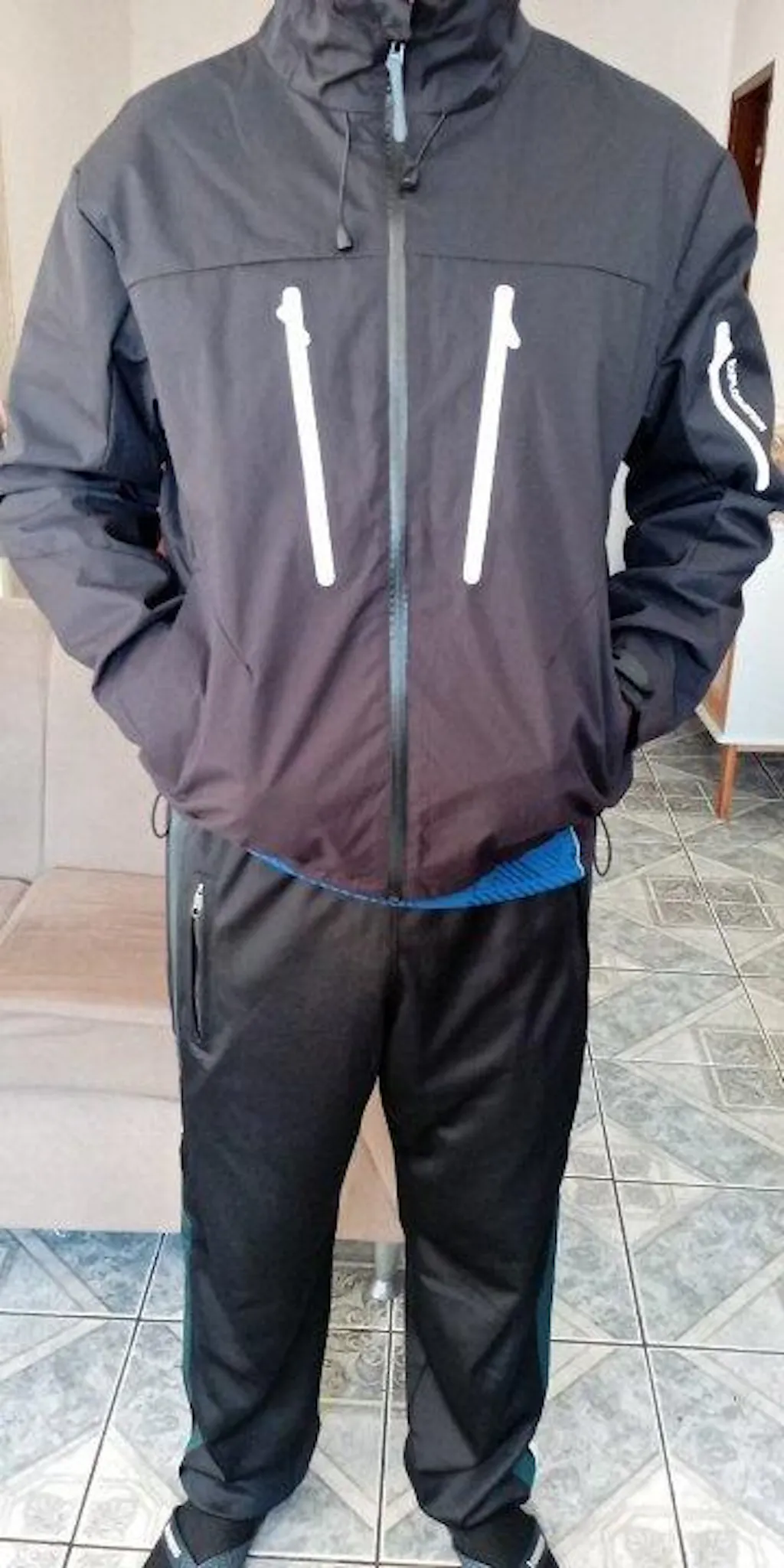 Capuz ajustável e zíper selado contra vento e umidade