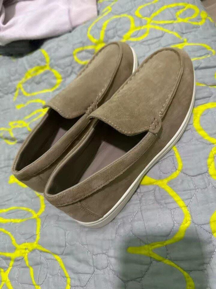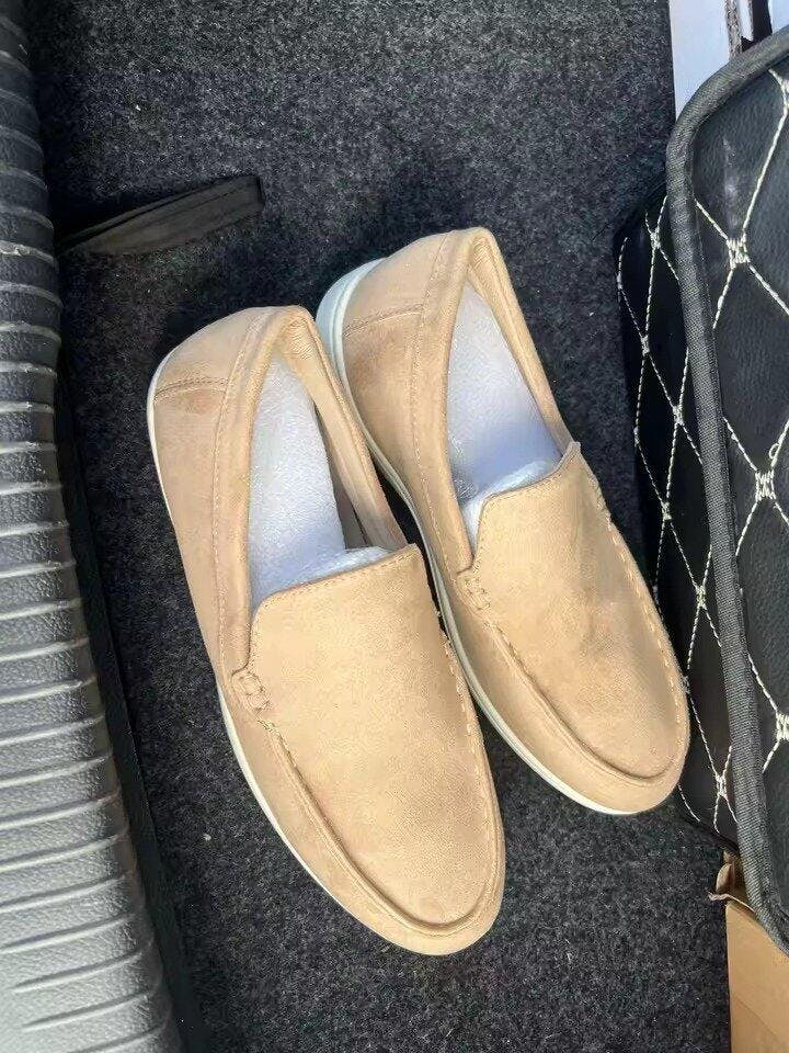 Confeccionado em camurça premium, o modelo traduz o estilo “quiet luxury” com design minimalista e estrutura leve, ideal para composições refinadas em ocasiões casuais ou ambientes sociais. O interior macio proporciona conforto ao longo do dia, enquanto o solado discreto mantém a silhueta elegante sem abrir mão da praticidade.