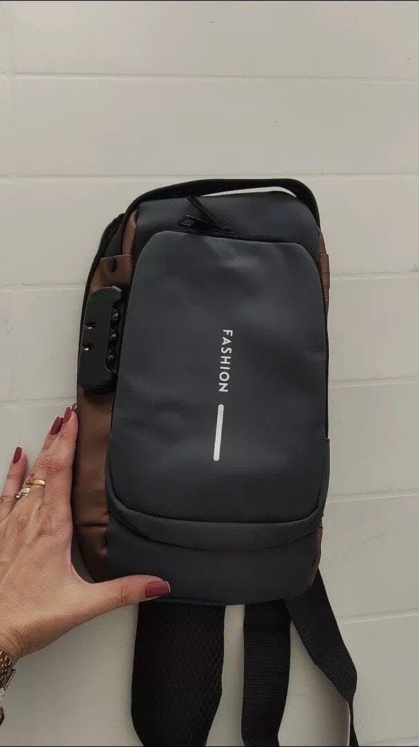 Mochila de Ombro Transversal Compacta Unilateral USB Trava de Código Á prova d'água | Lemartine
