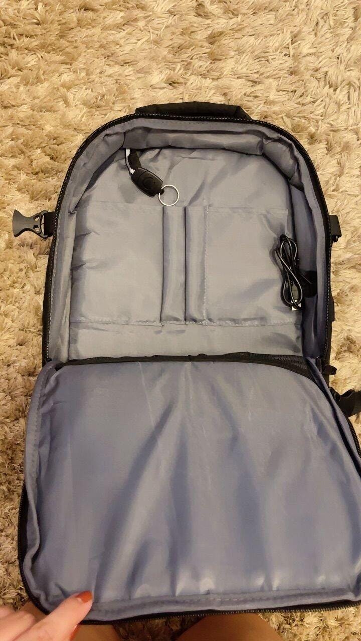 A mochila possui compartimento exclusivo para notebook de até 17,3 polegadas, além de bolsos adicionais para tablet e eletrônicos. O painel traseiro respirável e as alças acolchoadas oferecem conforto durante longos períodos de uso, enquanto as correias de fixação permitem prendê-la facilmente a malas com rodas.