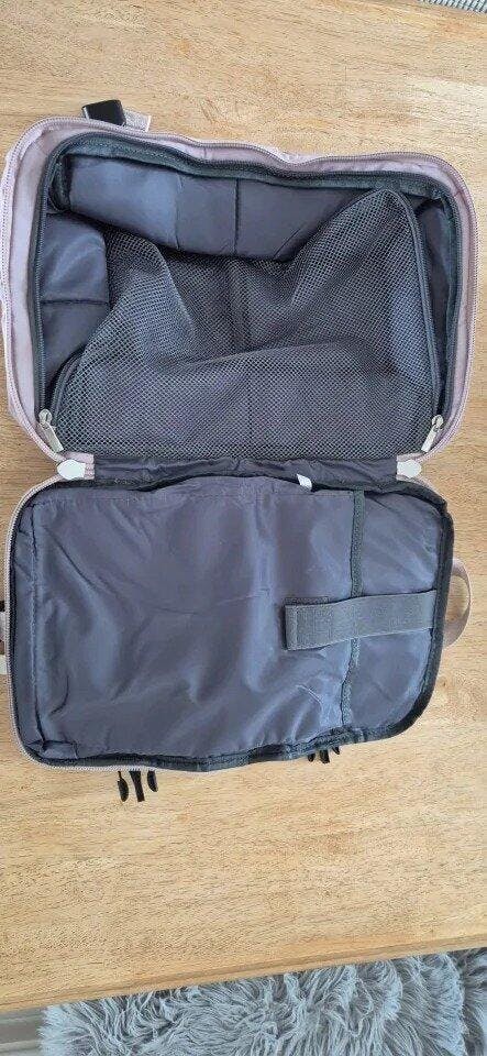Além disso, conta com porta USB externa, bolsos internos bem distribuídos e abertura de 180°, facilitando o uso em viagens como mala de bordo.